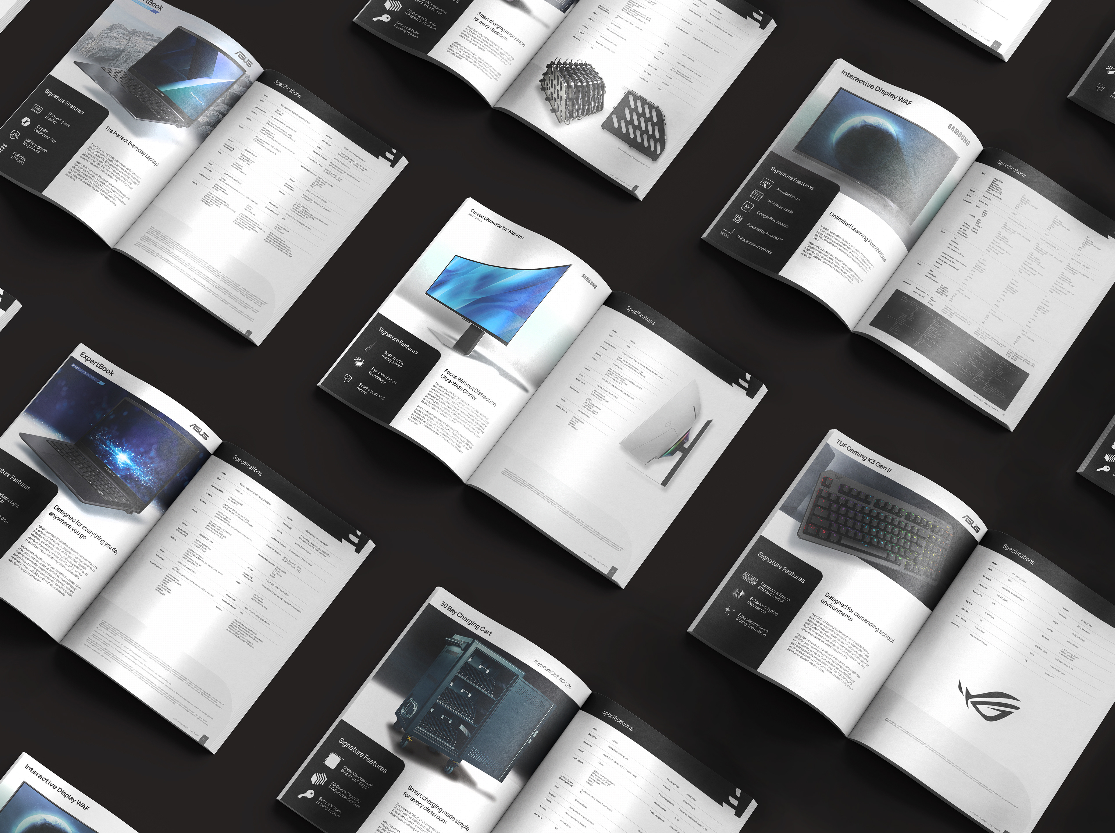 The work emphasizes information hierarchy, modular layouts, and consistent visual systems to support a wide range of product categories.
