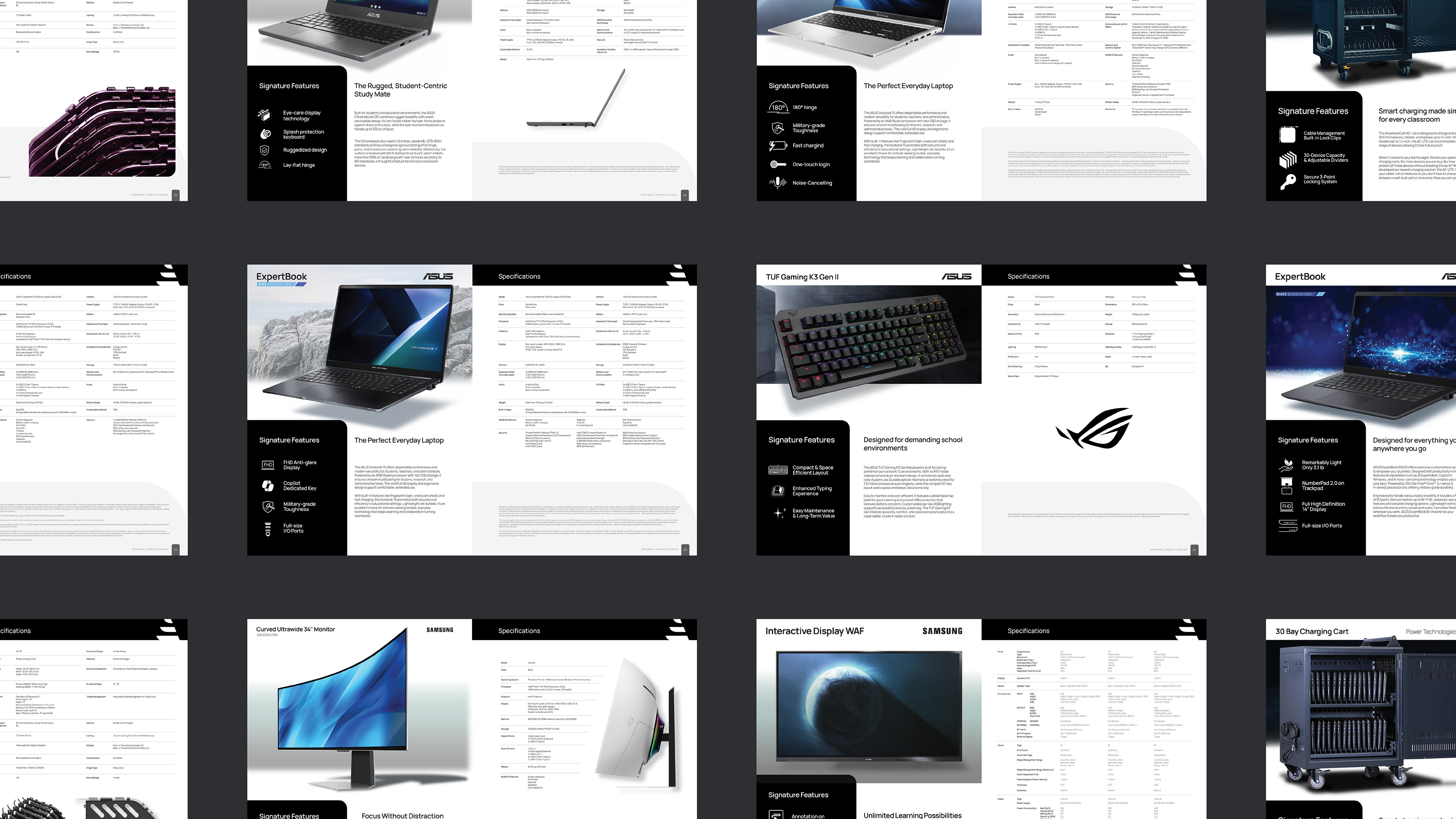 A structured product catalog system designed for Archangel Education & Technology, focused on presenting complex technical products with clarity, consistency, and scalability across print formats.